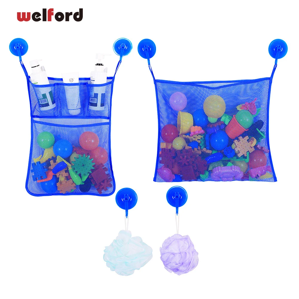 HOT SALE 2pcs/set Wall Hanging Bathroom Bath Toy Bags Organizer Closet Children Pouch For Baby Bath Toys Boo