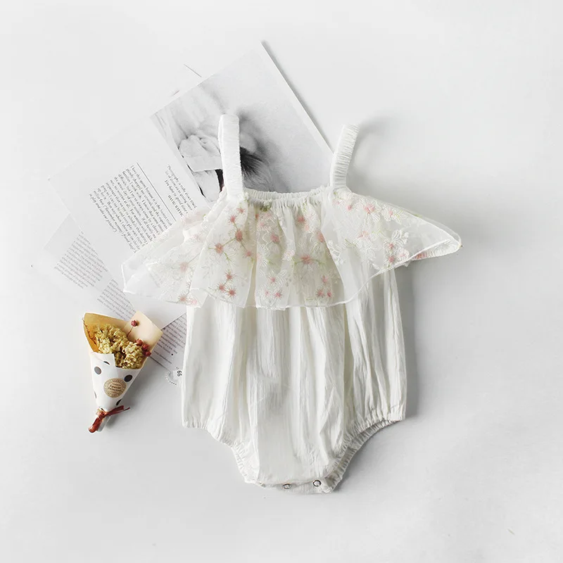 INS 2019 summer new born baby girl baby sling lace dress baby climb clothes conjoined at the pure c