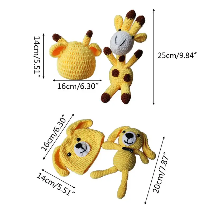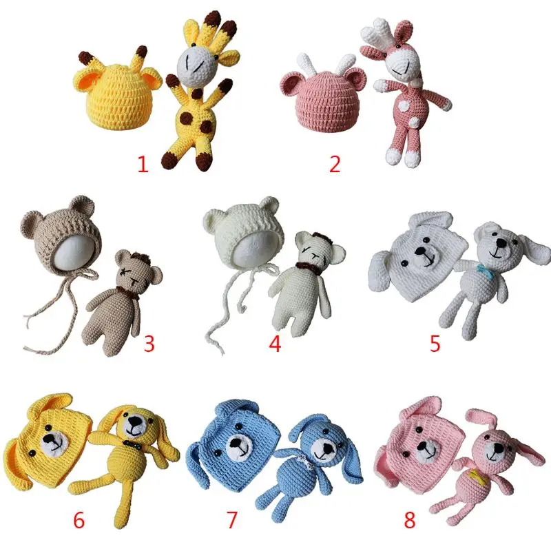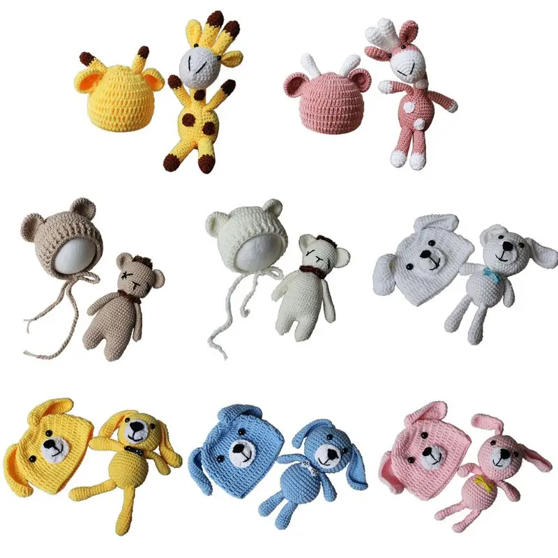 Newborn Baby Photography Prop Knit Cartoon Ears Hat Animal Toy Doll Costume Set