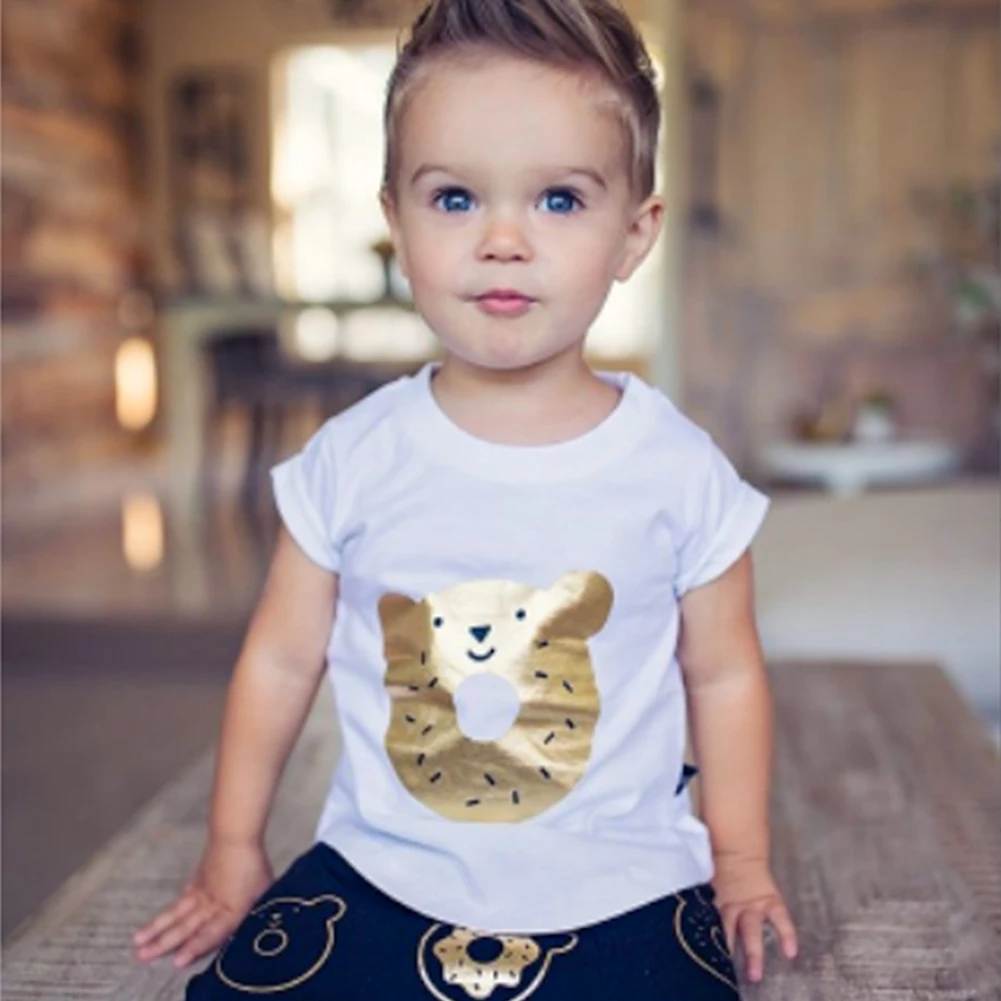Casual Toddler Baby Pants Bear Printed Summer Breathable T Shirt Cute Short Sleeve Children Clothes
