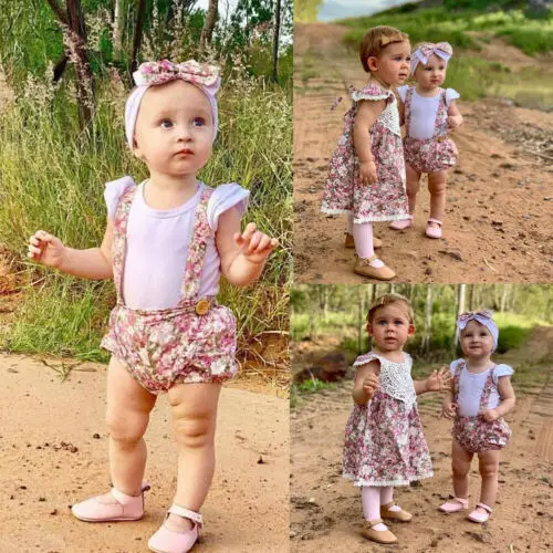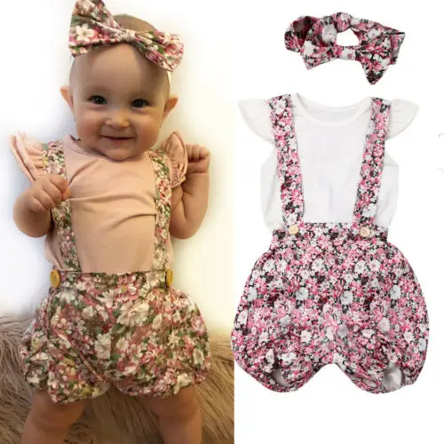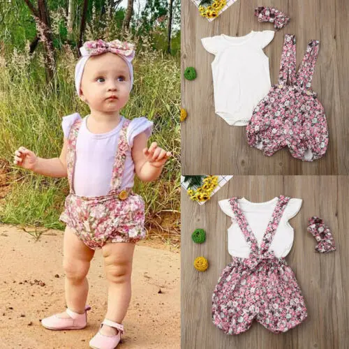 Summer Cute Toddler Kid Baby Girl Fly Sleeve Romper Floral Bib Short Pants Overall Outfit