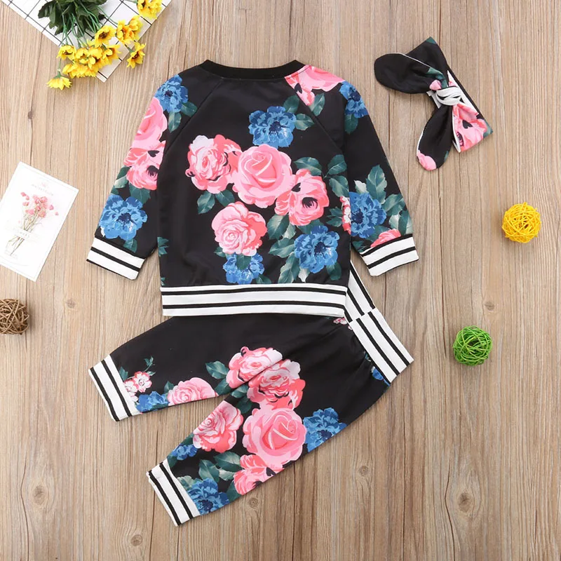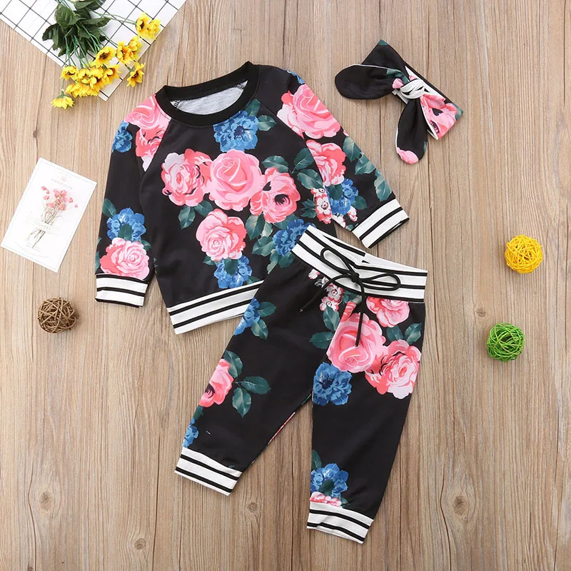 2018 Newborn Kid Baby Girl Clothes Set 3pcs Floral Tops T Shirt Pants Leggings Tracksuit Outfit Cut