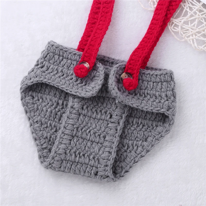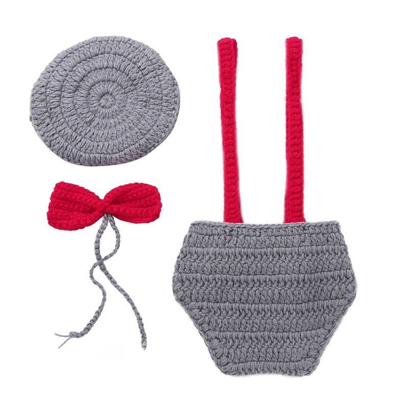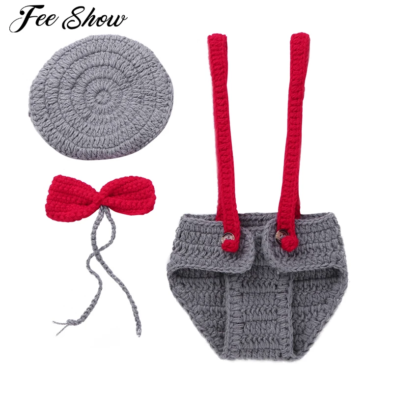 Newborn Baby Boys Girls Photo Costume Set Bloomers+Hat+Bowtie Handmade Crochet Knitted Photography