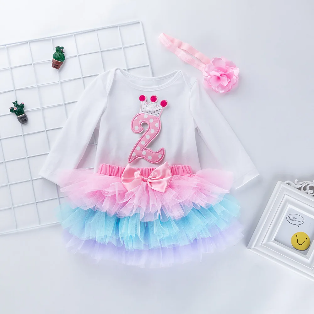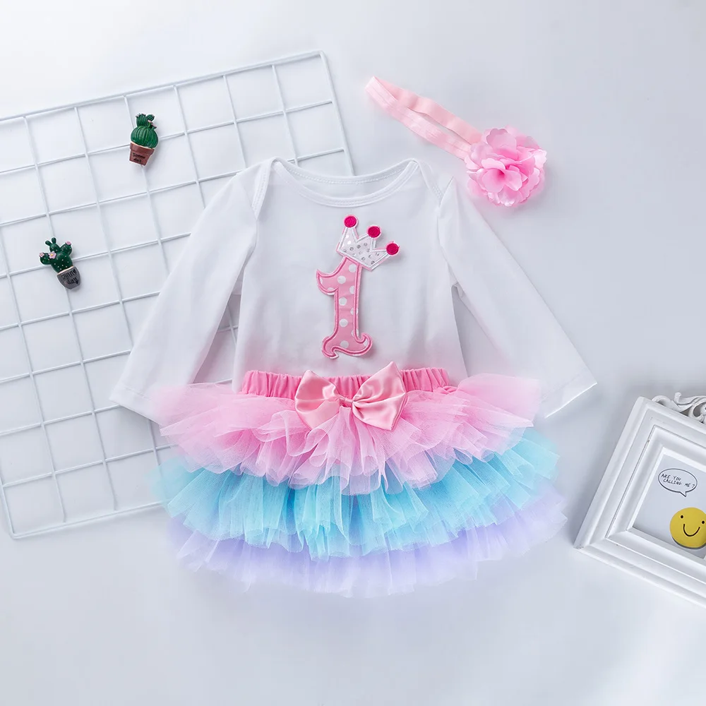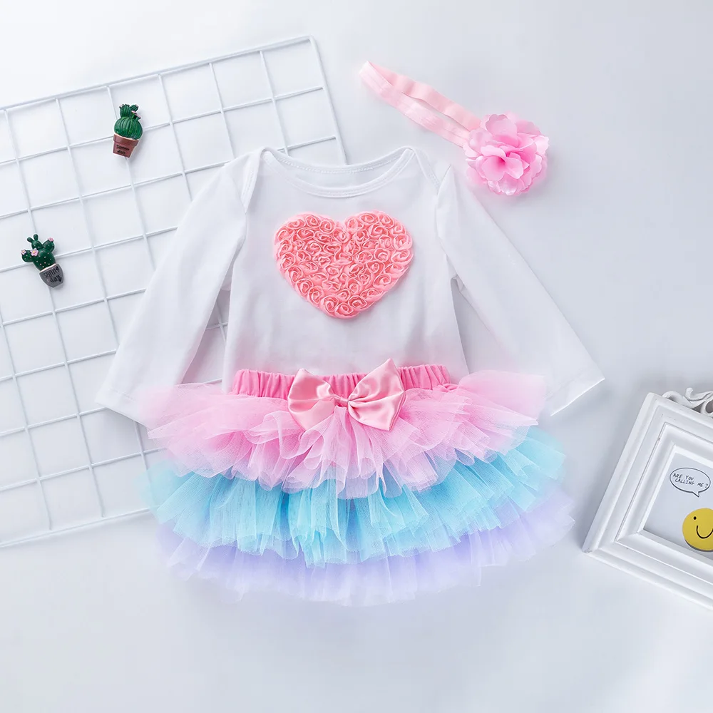 Baby Girls Dress Ruffled Tutu Romper+Tutu+Headband Cute Toddler Clothing Flower Longsleeve Vestidos