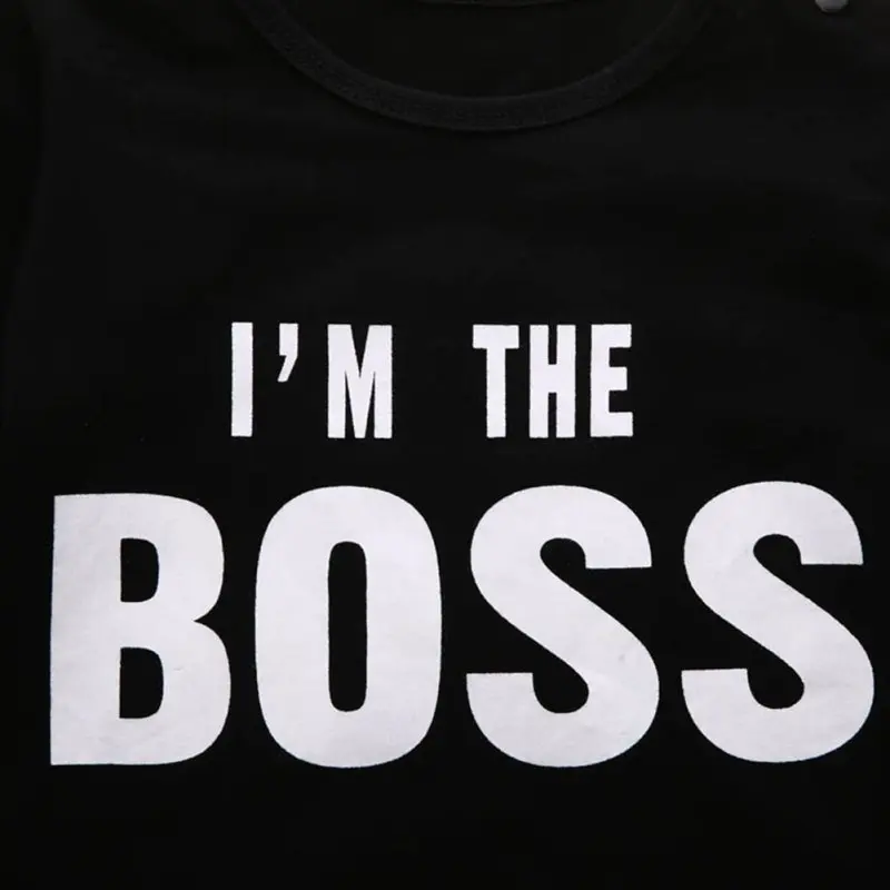 HIGH QUALITY hilittlekids Letter Printed I\'M THE BOSS Baby Kids Pattern Outfits Sets Boys Girls Long Sleeve Rom